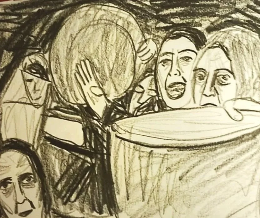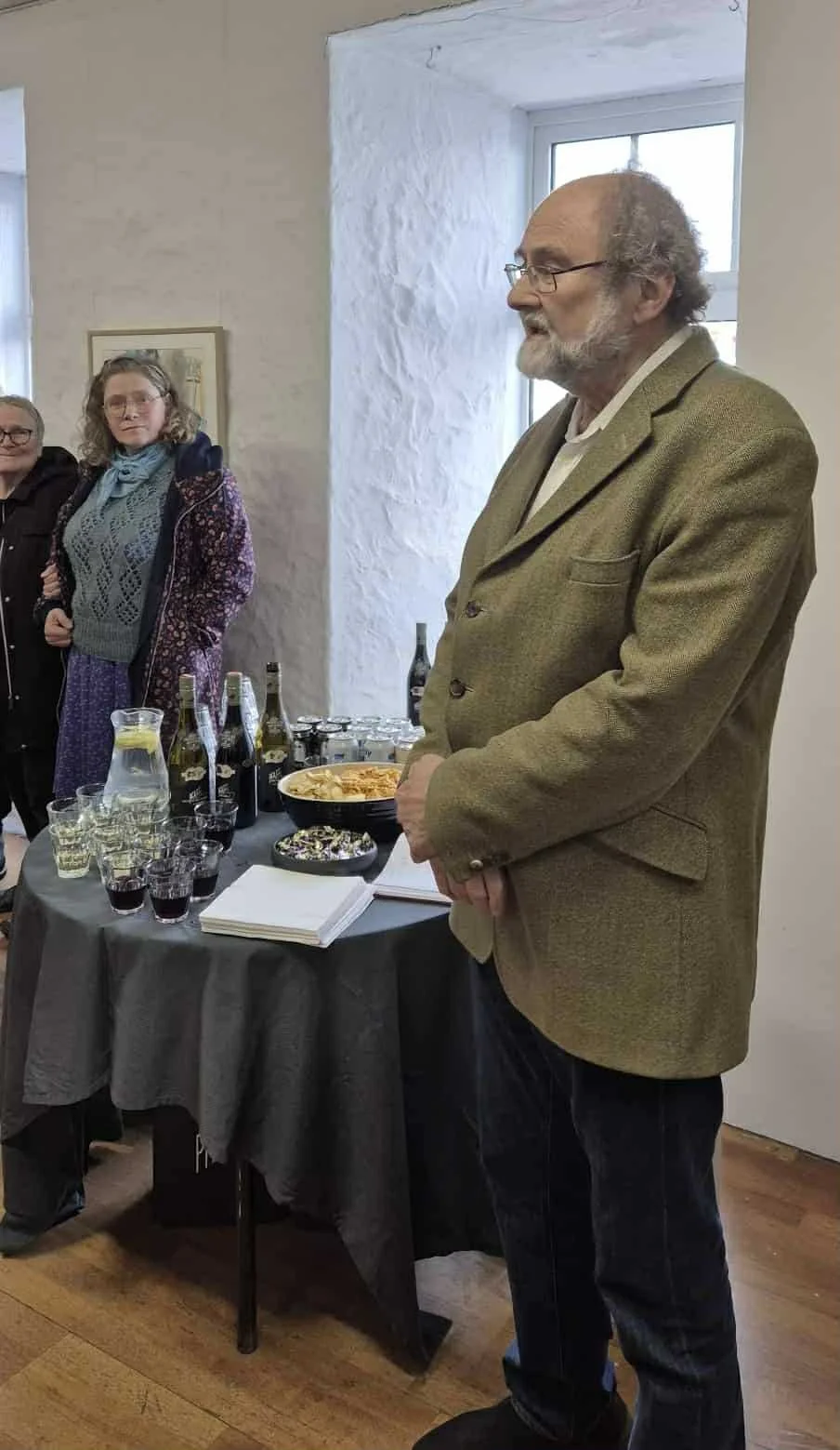 Partur av framsýningini er ein memento mori veggur, sum m.a. fevnir um tvær sera ymiskar myndir hjá Fríðu Matras Brekku. Tað er eitt steinprent við bláum ljósi í myrkri av útsýninum hjá listakvinnuni yvir á Koltur og ein eymliga neyv blýantstekning av víðagitna verkstaðshundinum Blixen, sum bara hevði trý bein og tá onkur harmaðist um hetta, var hundamamman Fríða skjót at svara, at tað altso var eitt meira enn tey tvey hjá viðmerkjaranum. Eins og í sálmatekstinum hjá Thomas Kingo, er framsýningin SUM ÍGJØGNUM SORTAR SKÝGGJA skipað soleiðis, at hon kann fatast í mótsetningum millum ljós og myrkur. Onkrastaðni harímillum eru vón og minnir – vanitas og memento mori – offurlambið, seyðarhøvdið, alt sum var og fór og fer. Samstundis sum vit fáa okkum ein døgverðabita á middegi, ber útvarpið boð um deyða, hungursneyð og oyðileggingar í Gaza, Ukraina og aðrastaðni og at enda koma andlátini og tá skulu børnini tiga, so vit hoyra hvør er deyður, er tað nakar mann kennir og síðan verður boðað frá bingo - ongastaðni er sambandið millum lív og deyða so ásýniliga absurd sum við døgverðaborðið – tað er okkara dagliga áminning um at gleðast um lívið meðan vit enn eru til.