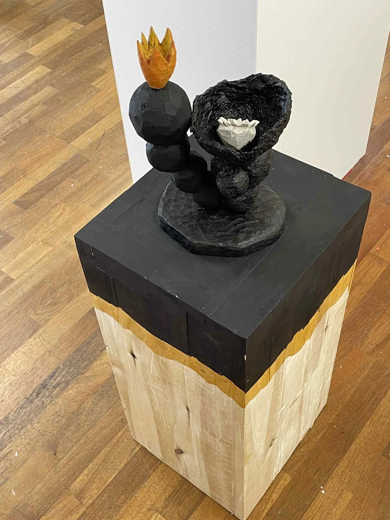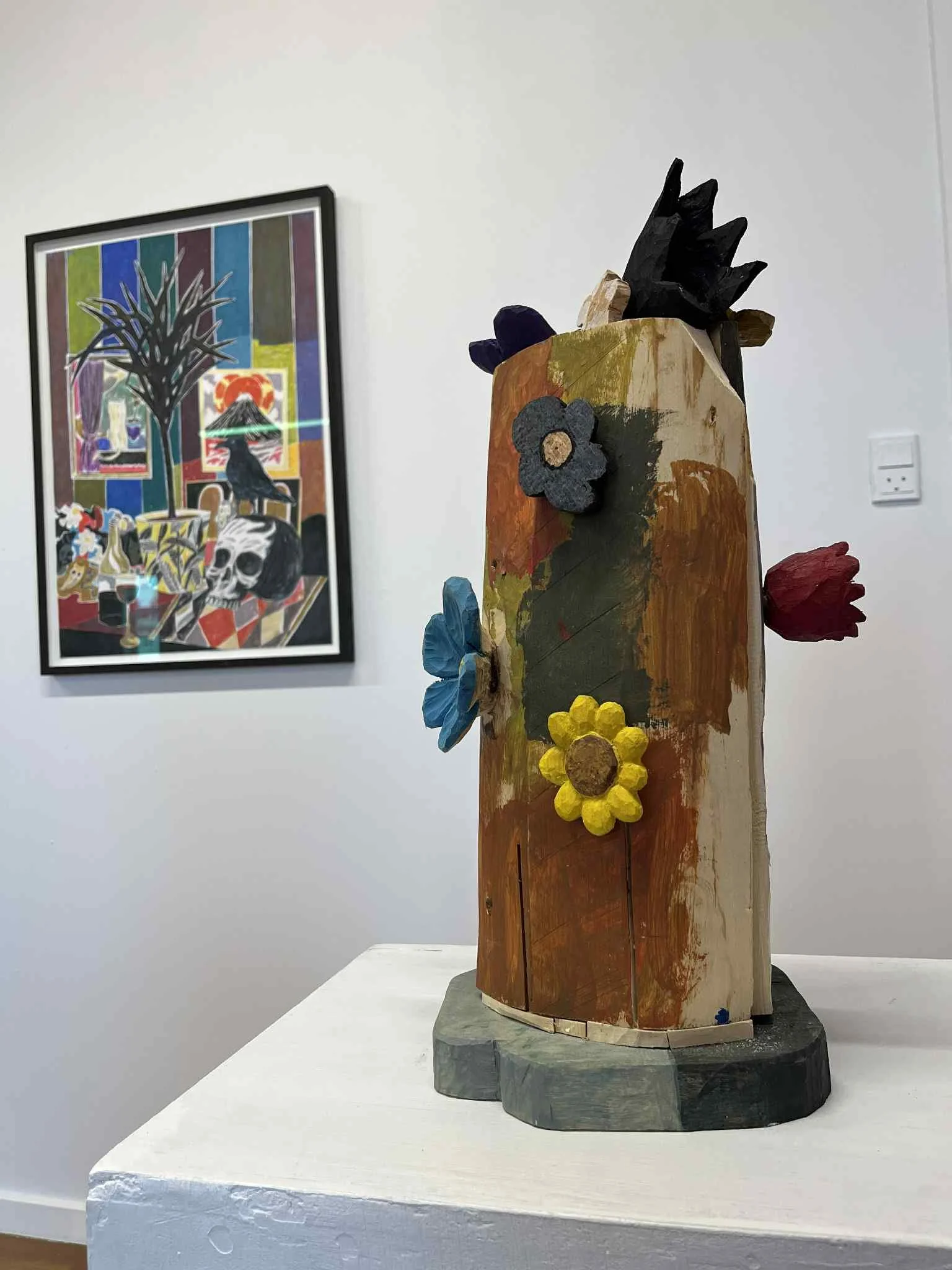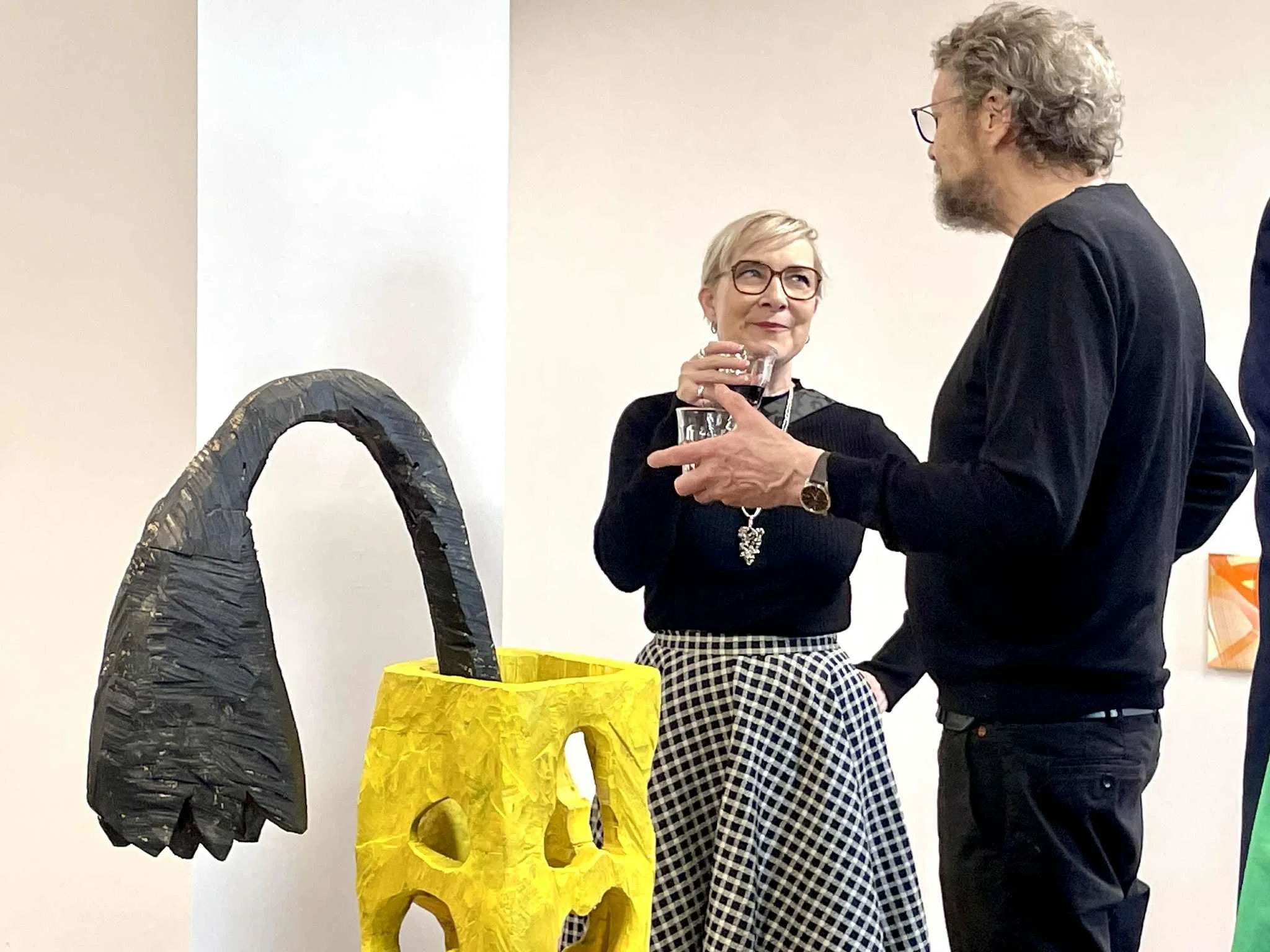 Sami boðskapur býr í viðinum hjá Hanna Bjartalíð, hvørs lívrunnu standmyndir bera brá av stórum tokka til tilveruna og alt tað vakra. Listaverkini hjá Hanna Bjartalíð eru humanistisk við stórum ansi fyri menniskjanum, ið verður lýst við eymleika og humor. Hann hevur í seinastuni miðsavnað seg um blómumyndevnið, sum leingi var mikið vanvirt, tí tað var sett í samband við kvinnulist. Hanni hevur í tekningum, relieffum og standmyndum arbeitt við myndevnum, ið minna um vanitasmyndir frá barokktíðini – t.e. til dømis í uppstillingum av øllum møguligum lutum, fløskum, blómum, skøltum osfr. Hann er í seinastuni vorðin eitt sindur meira monumentalur og tað dugir hann væl. Ein stór standmynd stendur á Glasi og tað tykist upplagt at fáa fleiri settar upp í almenna rúminum eitt nú í heimbýnum hjá Hanna í Klaksvík har tey eru ófør at seta upp standmyndir. Í teimum mangan stuttligu verkunum hjá Tóroddi Poulsen býr djúpur tilveruligur álvari og ein sera originalur háttur at hugsa myndevni, ið eitt nú fevna um víngløs og skøltar. Í einum prenti sæst ein svørt hond miðskeiðis í myndarúminum. Á hvørjum fingri balanserar eitt trivaligt glas av reyðvíni og uppiyvir henni síggja vit ein grínandi deydning undir reyðhúgvu - hvør veit, kanska gleðir hann seg at halda ólavsøku?