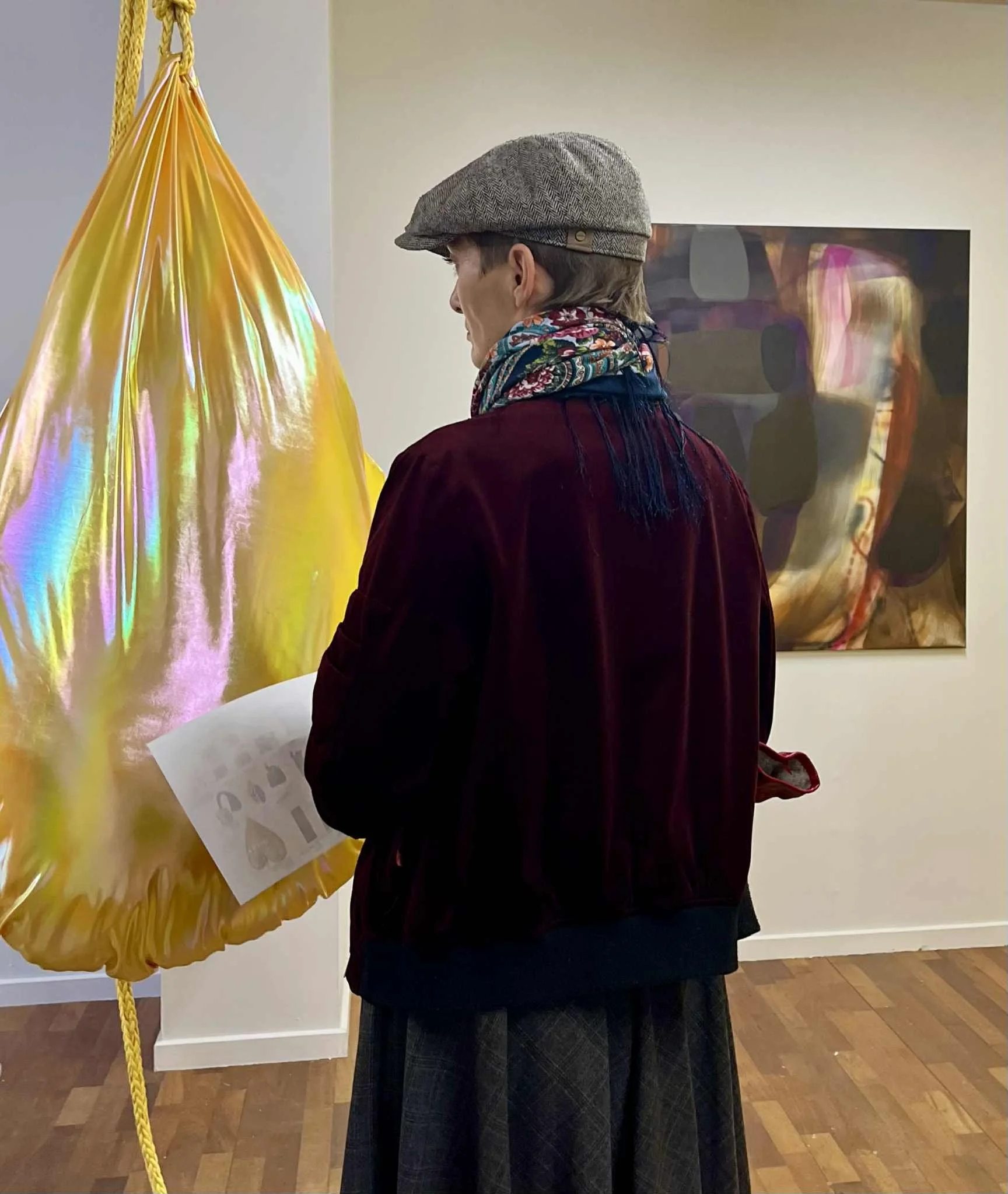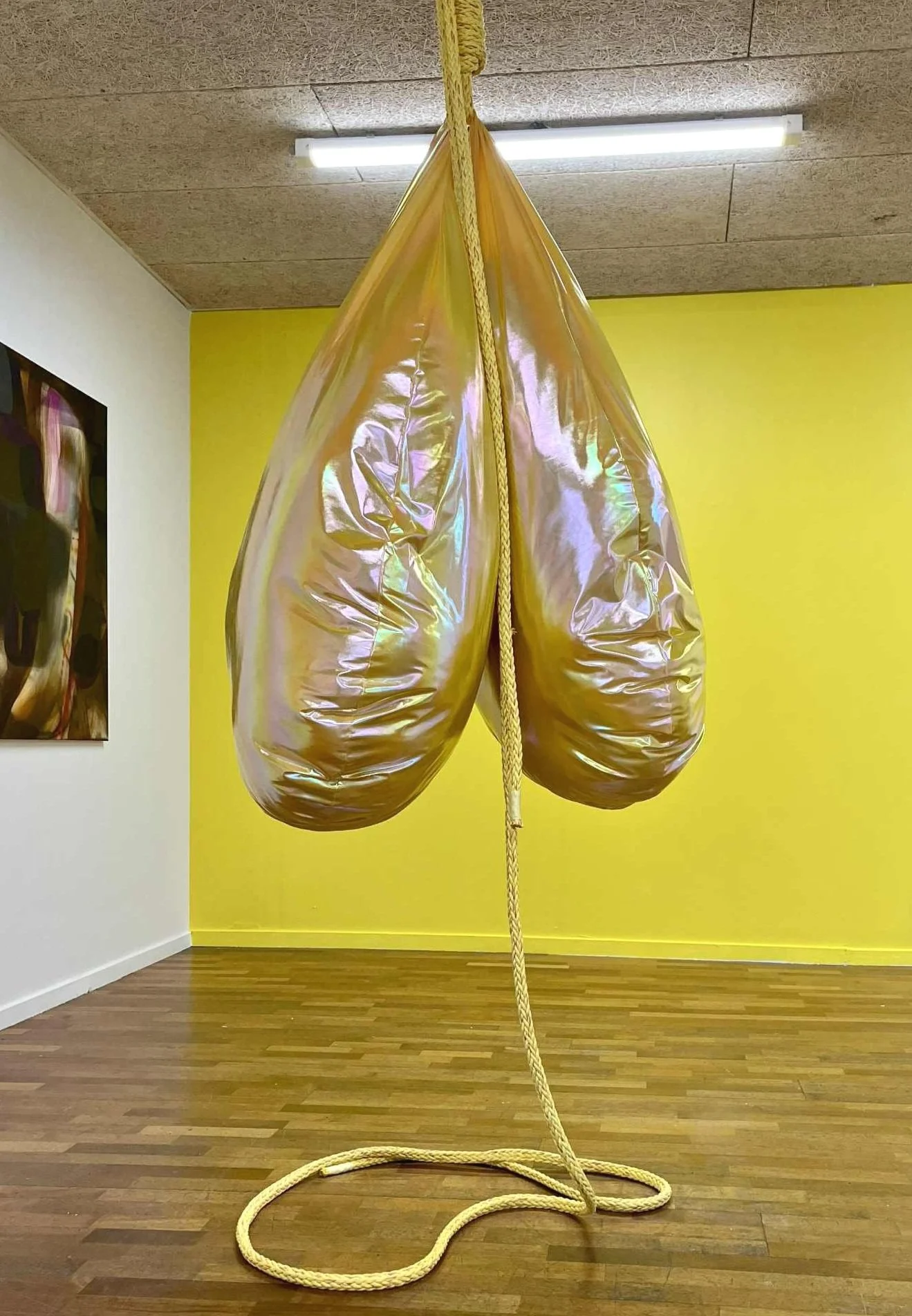 Randi Samsonsen er tekstillistakvinna, hvørs verk fevna breitt um sera ymisk evni. Listakvinnan, sum herfyri vann ta donsku AICA listaummælaravirðislønina, hugsar, heklar, bindur, seymar og broderar síni verk, ið tó at tey eru bleyt við einum tilvitað klombrutum, elskuligum og skemtiligum framburði, ikki sjáldan hava samfelagskritiskan brodd – hetta er eisini galdandi fyri nýggja verkið Big Beautiful Balls, ið er eitt ljósaviolett/gult avbrigdi av einum posakendum skapilsi, sum Randi hevur arbeitt við seinastu árini. Hetta skapið er universalt og verður nýtt á konseptuellan hátt soleiðis, at tað til dømis á einari framsýning kann sipa til lívgevandi dropan í kendu yrkingini hjá Karsteni Hoydal, meðan tað aðrastaðni snýr seg um kapitalismukritikk rætt og slætt. Nýggja mjúka heingistandmyndin hjá Randi glitrar sum tann gylta sólin hjá Kingo, men heitið er meira ófrættakent og sipar til ivasama lógarpakkan hjá amerikanska forsetanum, sum hann kallar One Big Beatiful Bill.