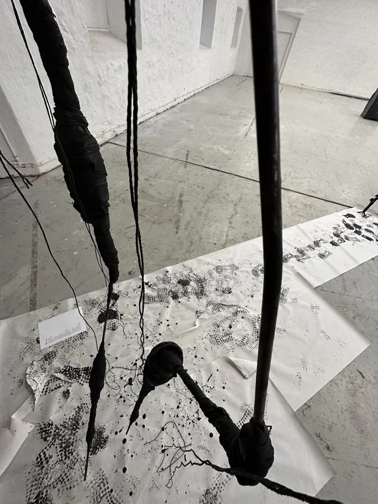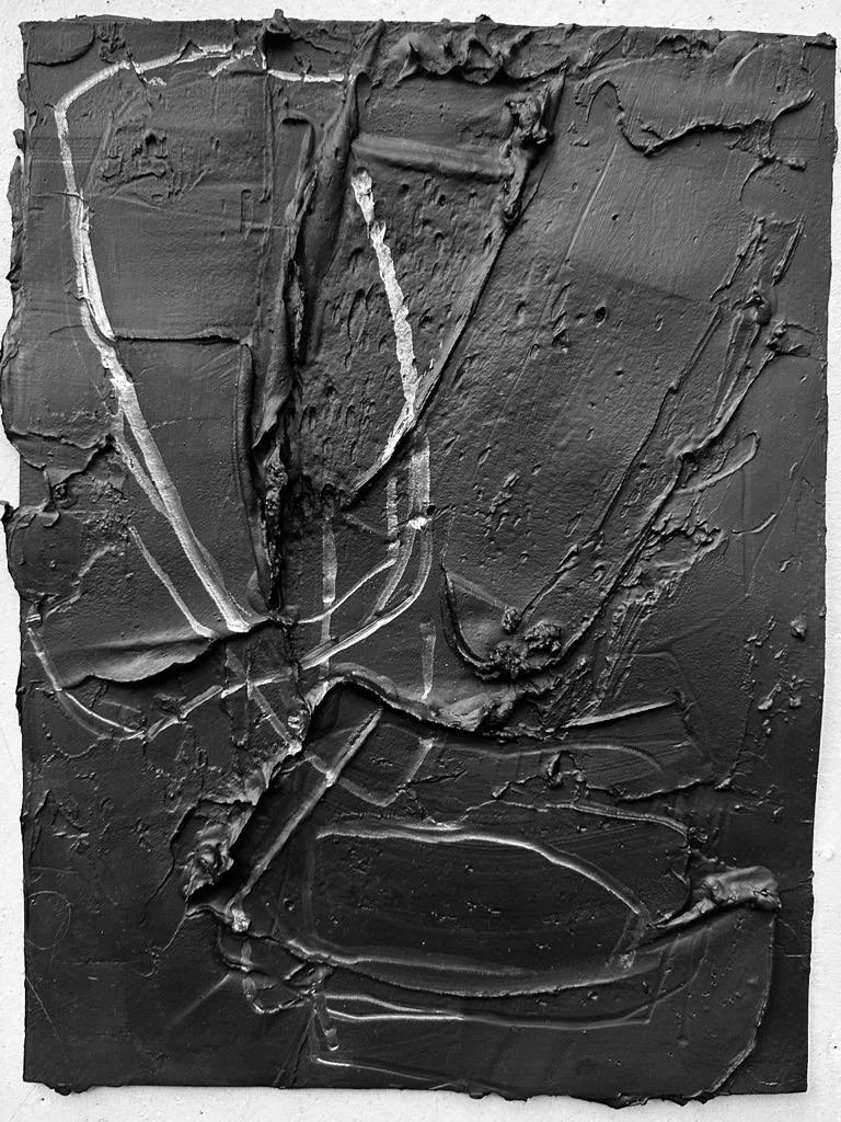 Tilfarið, ið er vatn, grafitt, olja, sandur og pappír er partur av einum ráari, frummyndaligari listahugsan, har rørslan innskrivar seg beinleiðis í tilfarið. Verkini kykna tessvegna millum kropp og ætlan, millum tilfarsligt skilvísi og visuella kanning. Vælkomin til vernissage Uppiá í Steinprenti leygardagin 29.november kl.15-17, har høvi verður at heilsa uppá listakvinnuna og at njóta okkurt gott aftur við listini.